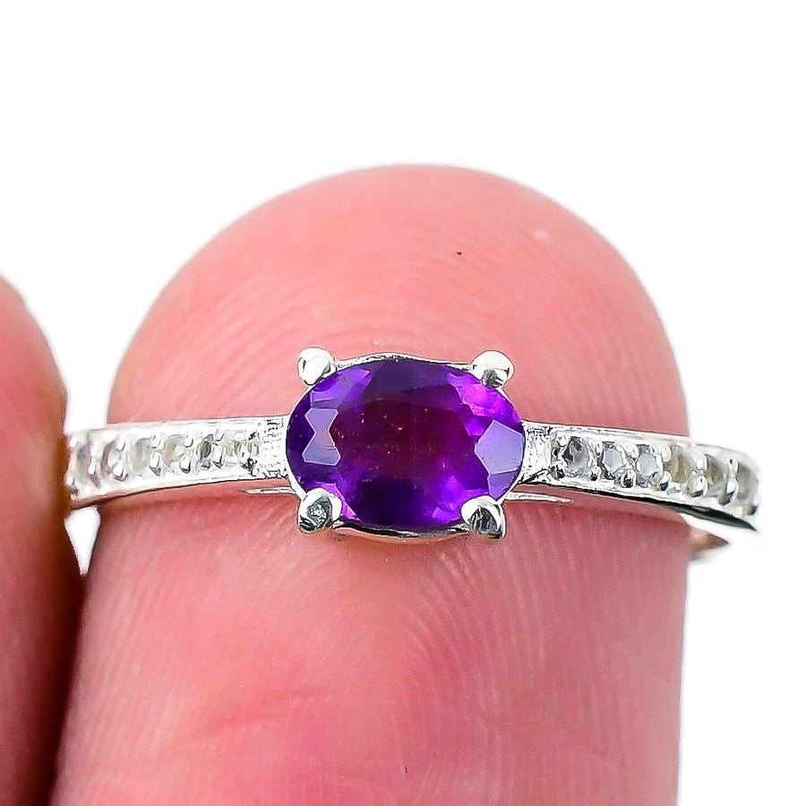 Natural Amethyst 925 Solid Silver Wife Statement Elegant Daughters Day Ring US 7