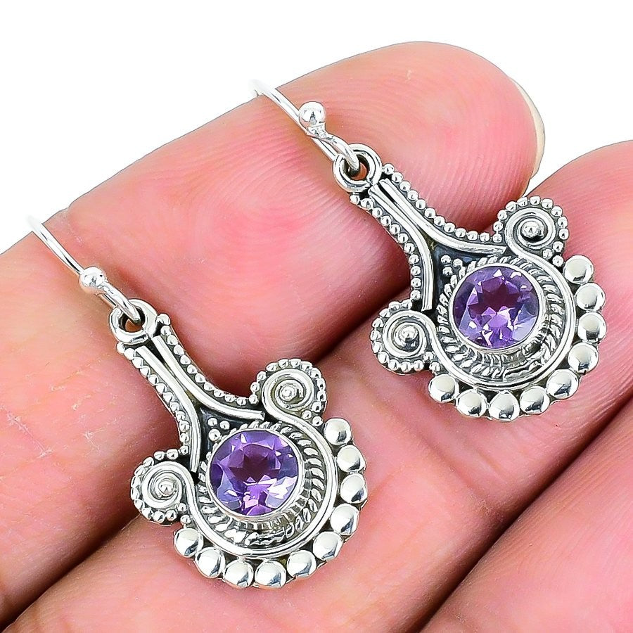 Natural Amethyst Dangle Hook Daughter Gift New Earrings Jewelry 925 Solid Silver