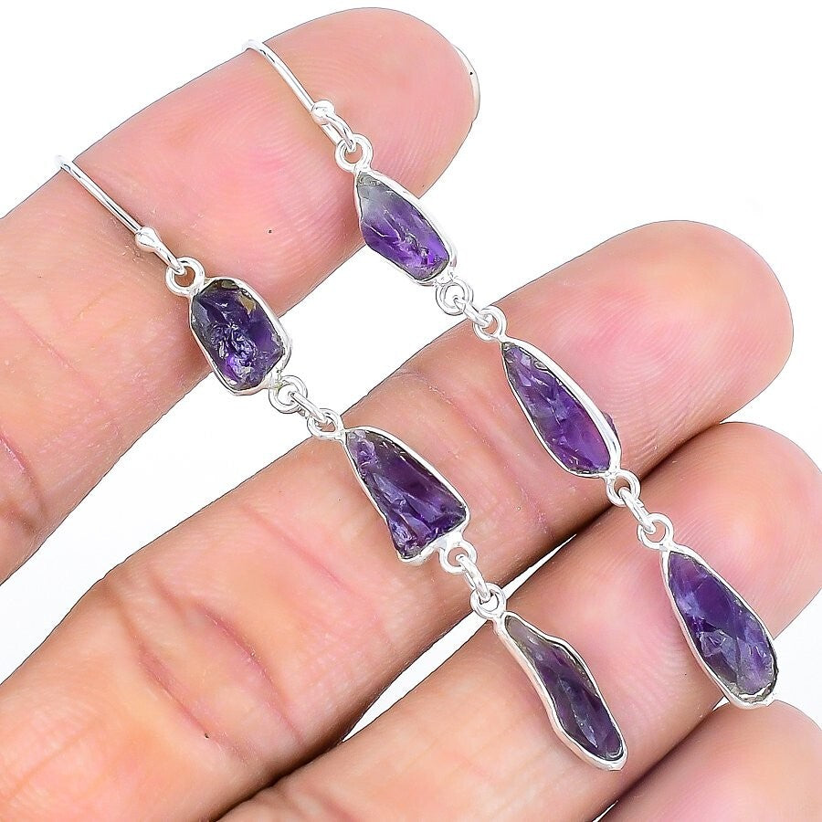 Natural Amethyst Druzy 925 Silver Ethnic Drop Hook Easter Gift Daughter Earrings