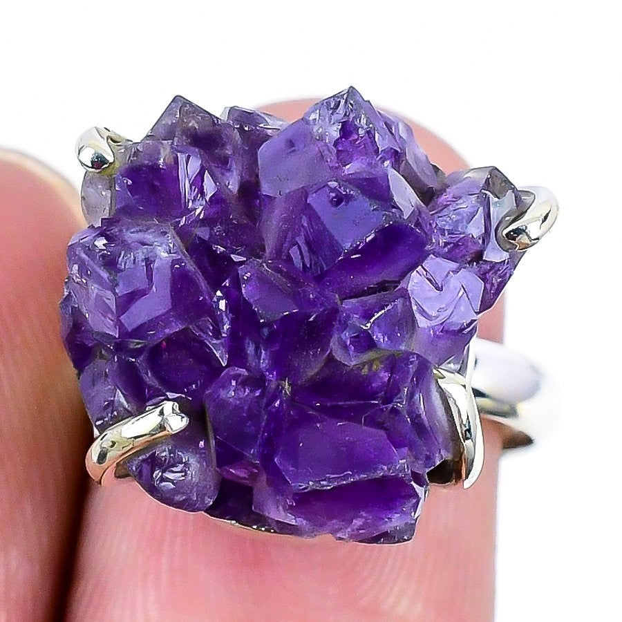 Natural Amethyst Druzy 925 Solid Silver Statement Ethnic Anniversary Ring US 7