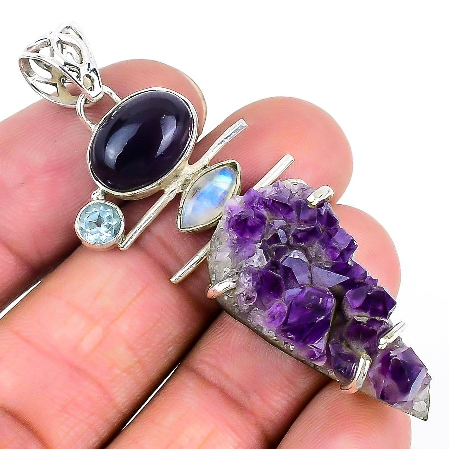 Natural Amethyst Druzy 925 Sterling Silver Best Daughters Gift Wedding Pendant