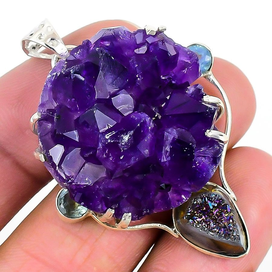 Natural Amethyst Druzy 925 Sterling Silver Handcrafted Daughter Pendant Jewelry