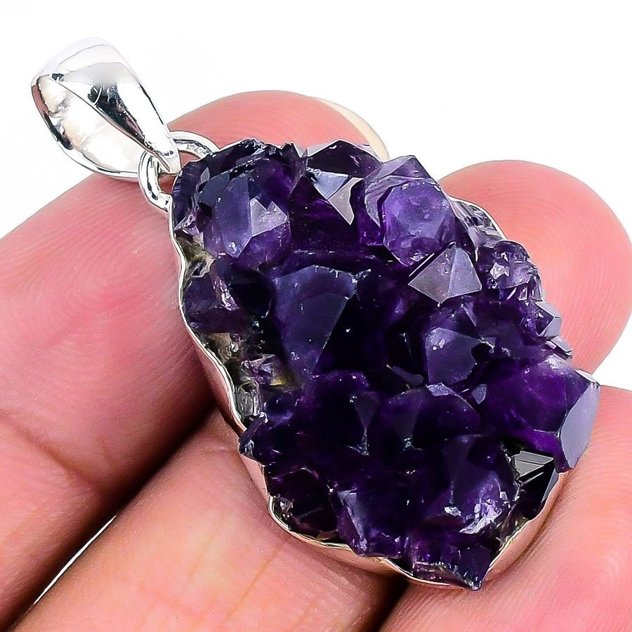 Natural Amethyst Druzy Solid Silver Daughters Day Boho Wife New Pendant Jewelry