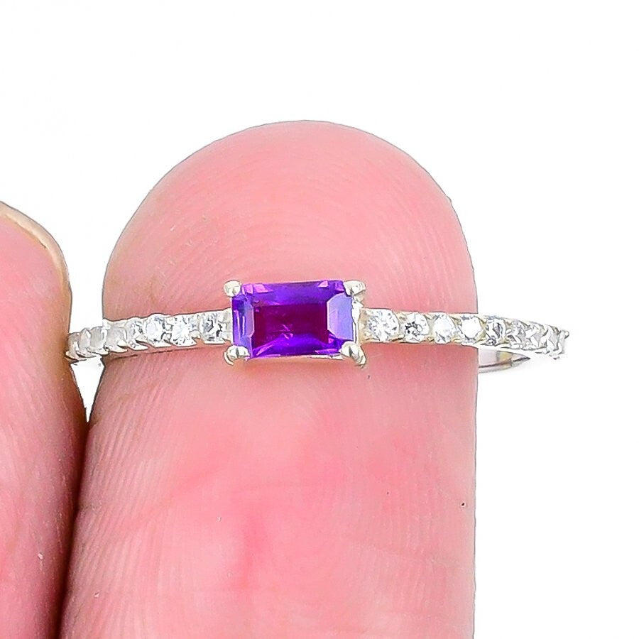 Natural Amethyst Faceted Cluster Daughter Crown Chakra Ring Size 8 Solid Silver