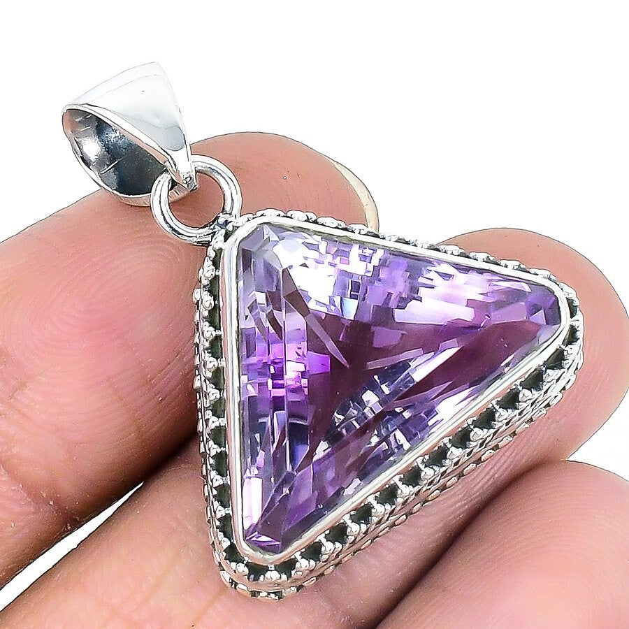 Natural Amethyst Faceted Engagement Handcrafted Pendant Solid Sterling Silver