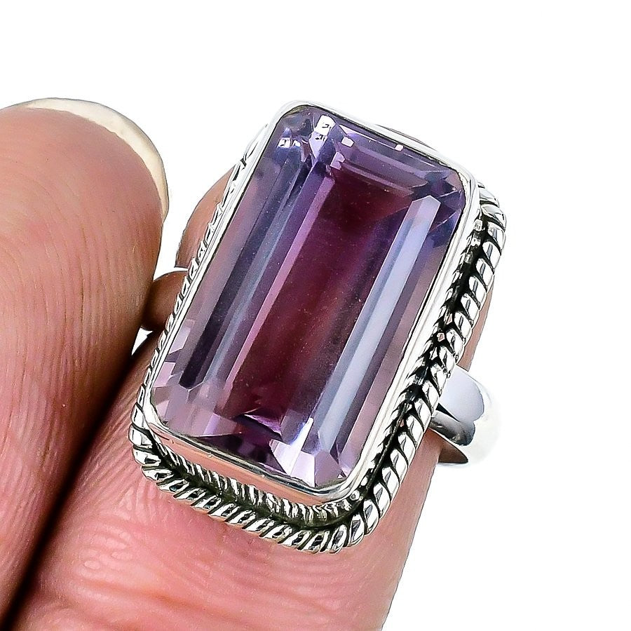 Natural Amethyst Faceted Solid Silver Daughter New Statement Ring Jewelry US 8