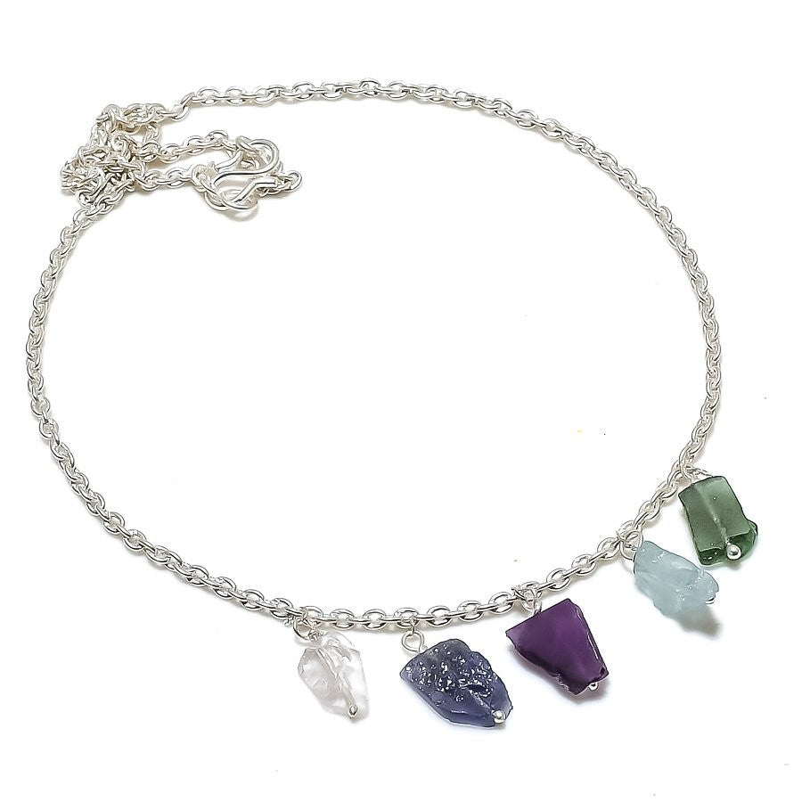 Natural Amethyst Rough Birthday Hook Chain Channel Set Necklace Sterling Silver
