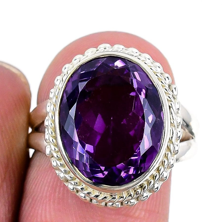 Natural Amethyst Solid Sterling Silver Statement Best Daughters Gift Ring US 8