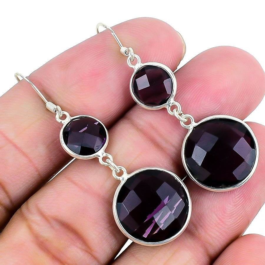 Natural Amethyst Treated 925 Silver Drop Elegant Sisters Gift Earrings Jewelry