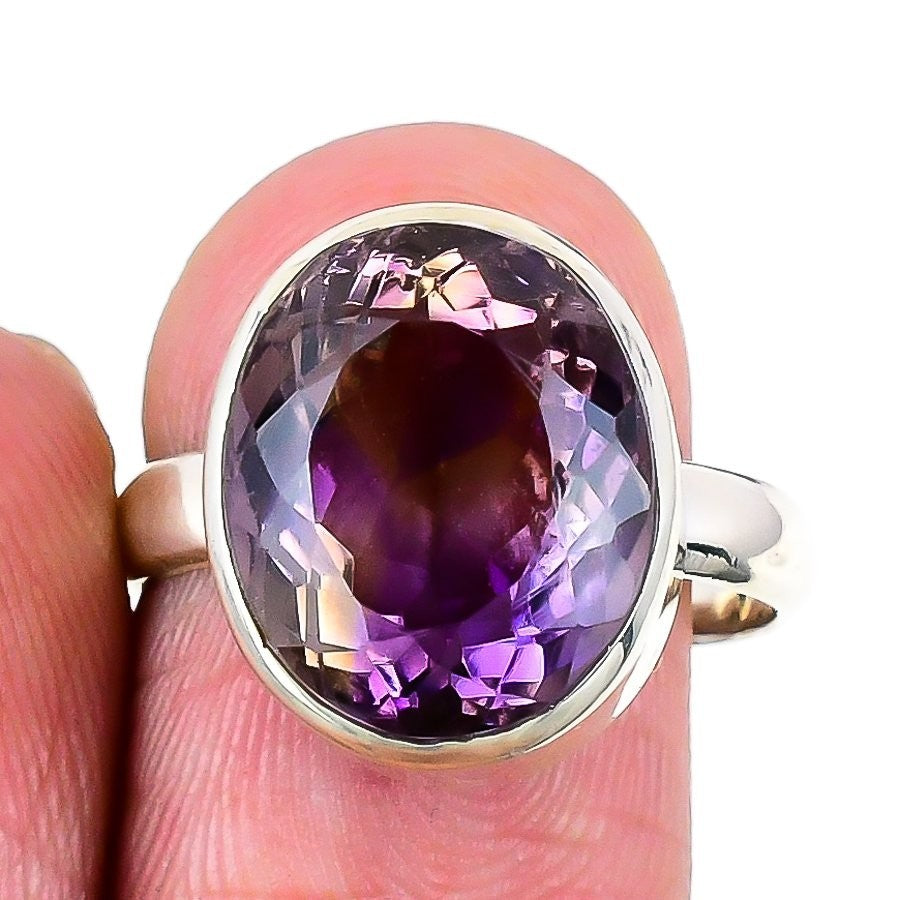 Natural Ametrine Birthday Anniversary Statement Engagement Ring 925 Solid Silver