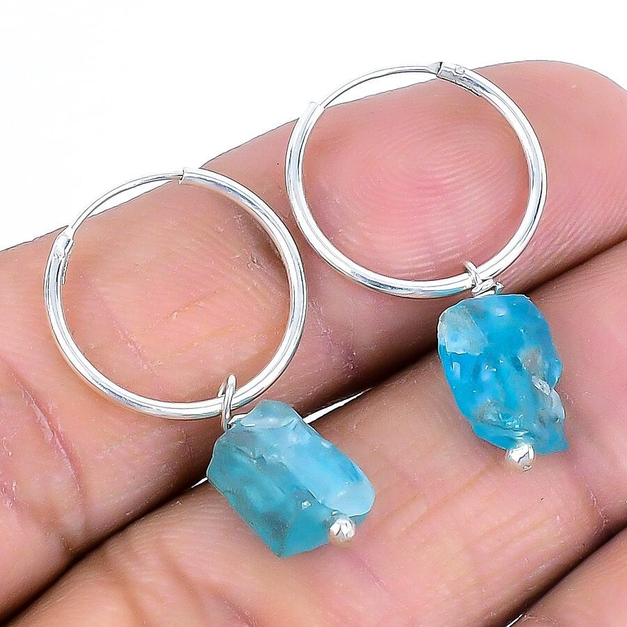 Elegant Natural Apatite Druzy 925 Silver Hook Handcrafted in
