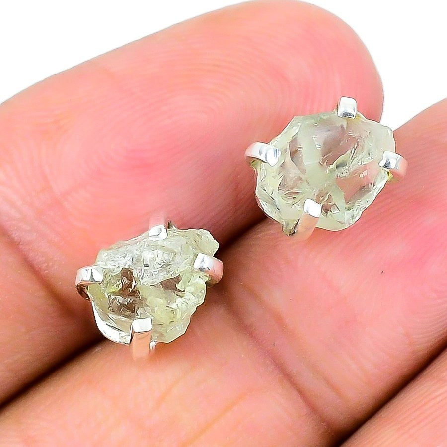 Natural Apatite Rough Solid Sterling Silver Wedding Stud Post Earrings Jewelry