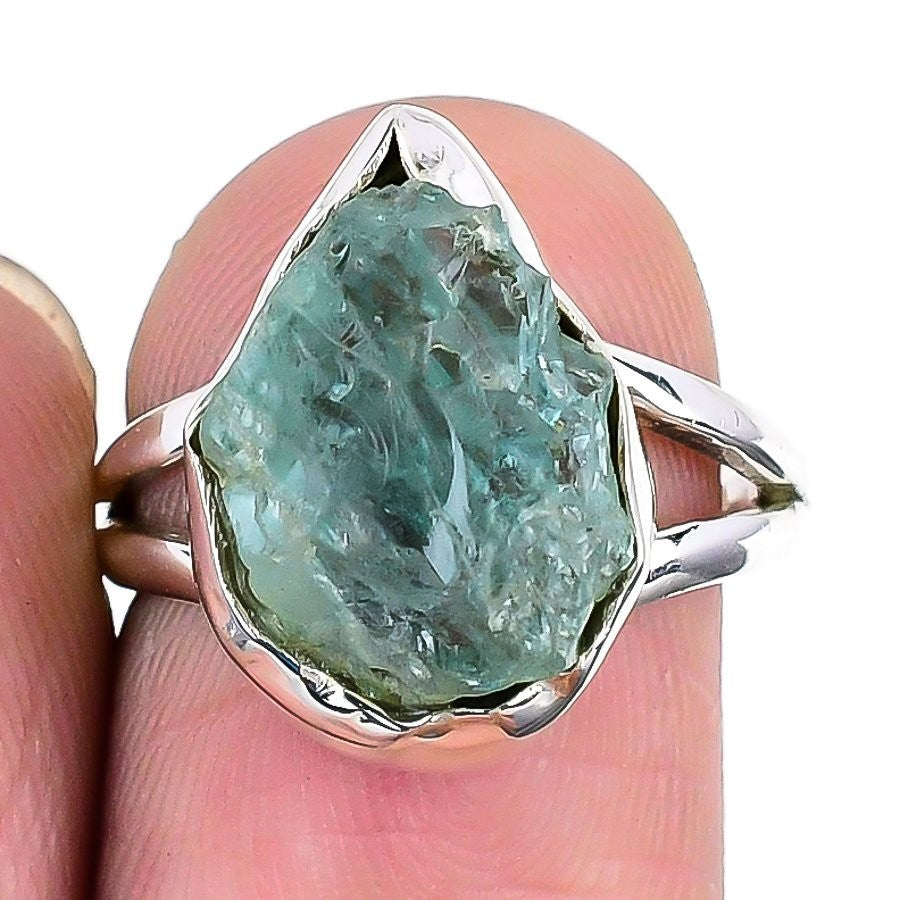 Natural Aqua Apatite 925 Sterling Silver Unique Statement Ring Jewelry Size 7