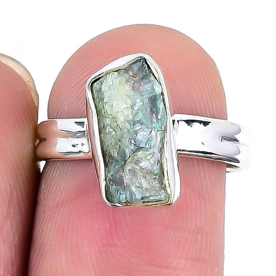 Natural Aqua Apatite Sterling Silver Boho Statement Elegant Bezel Wife Ring US 7