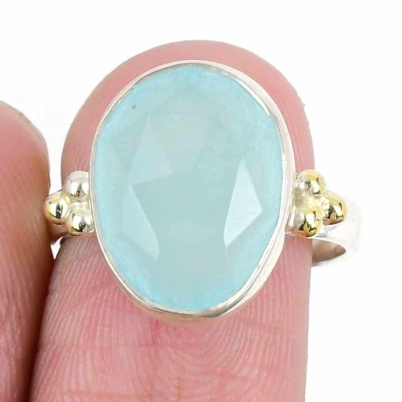 Elegant Natural Aqua Chalcedony 925 Sterling Silver Boho in
