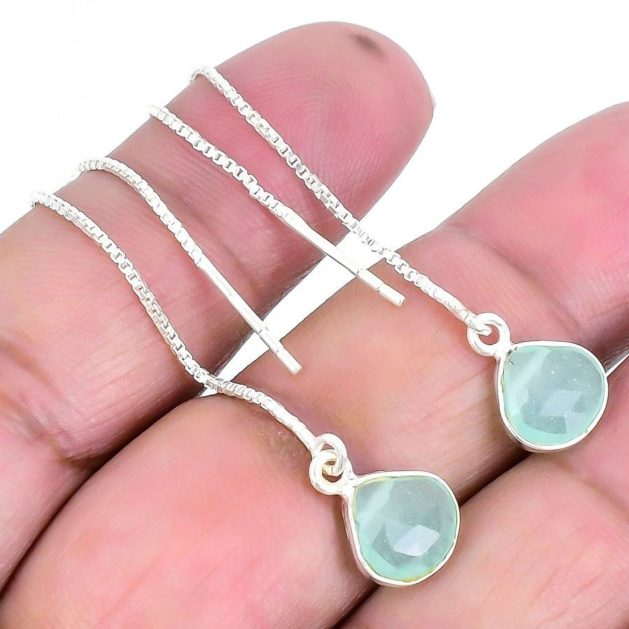 Natural Aqua Chalcedony Drop Dangle Wedding Earrings Jewelry 925 Sterling Silver