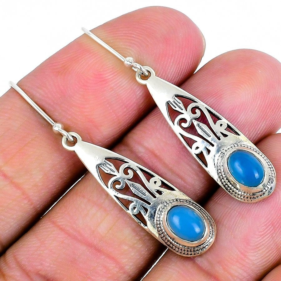 Natural Aqua Chalcedony Sterling Silver Hook Drop Dangle Boho Earrings Jewelry