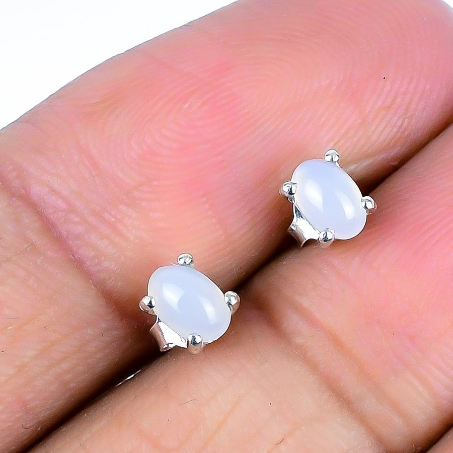 Natural Aqua Chalcedony Sterling Silver Stud Post Birthday Anniversary Earrings
