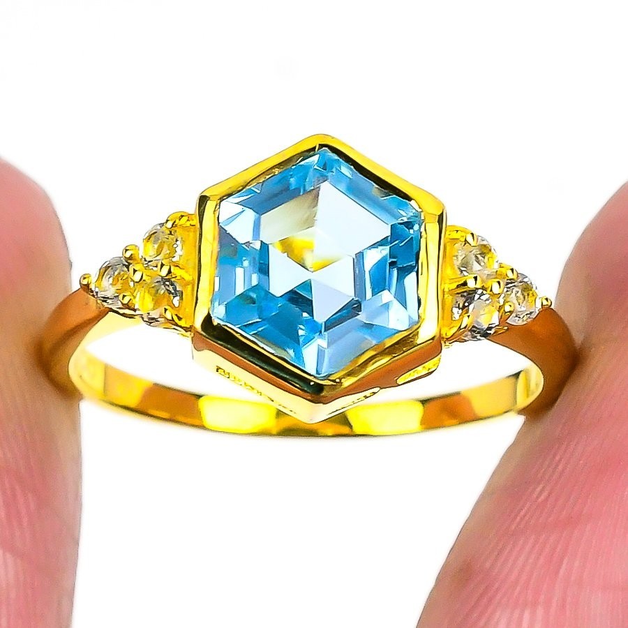 Natural Aquamarine 925 Silver Statement Throat Chakra Birthday Wedding Ring US 8