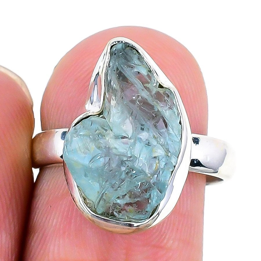 Natural Aquamarine 925 Solid Silver Unique Statement Elegant Ring Jewelry US 7.5