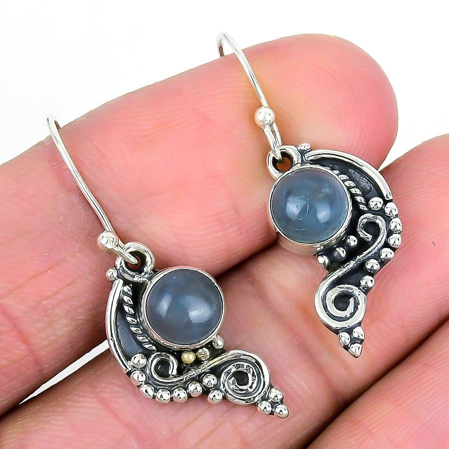 Natural Aquamarine 925 Solid Silver Wife Birthday Drop Dangle Earrings Jewelry