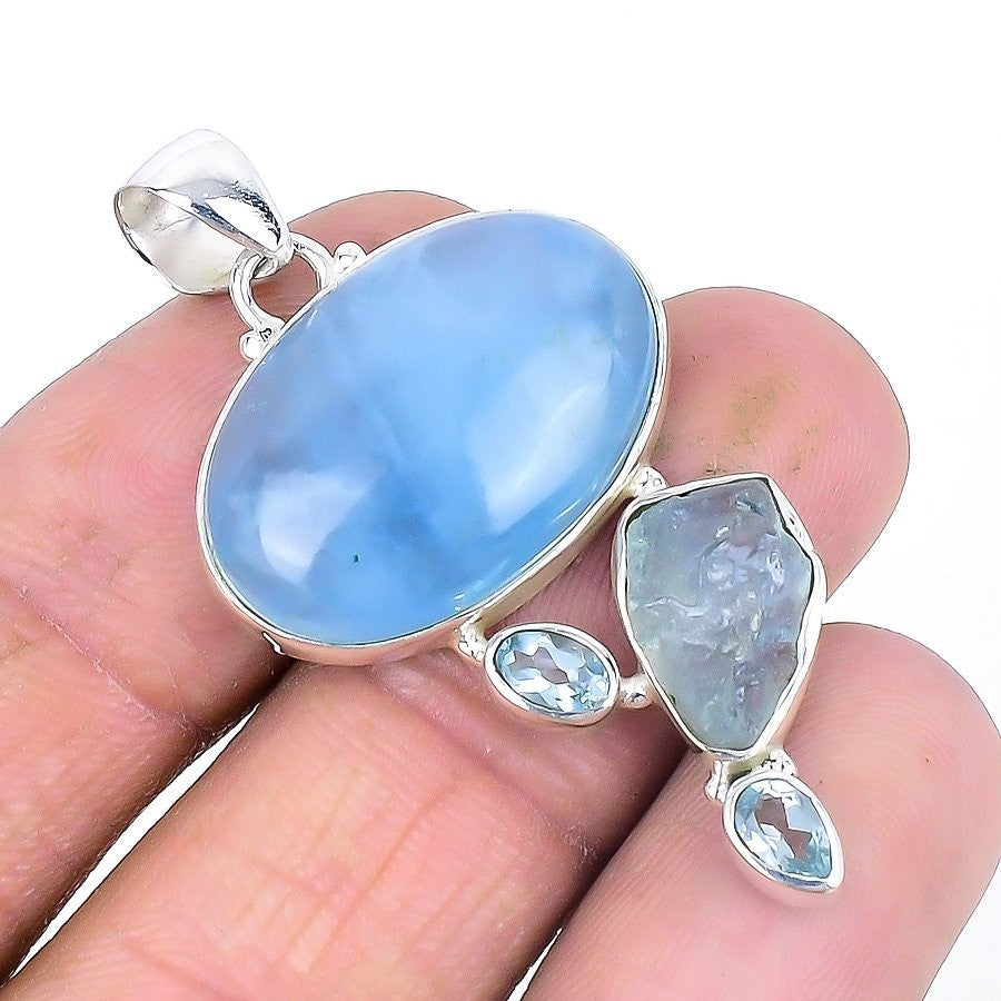 Natural Aquamarine 925 Solid Silver Wife March Birth Ethnic New Pendant Jewelry