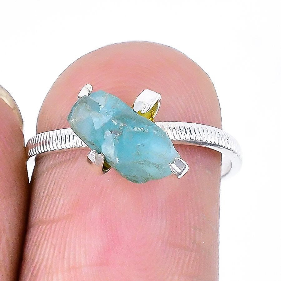 Natural Aquamarine Druzy 925 Silver Statement Elegant Boho Ring Jewelry Size 7