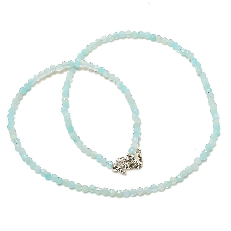 Natural Aquamarine Faceted Sterling Silver Mother March Chain Necklace Jewelry