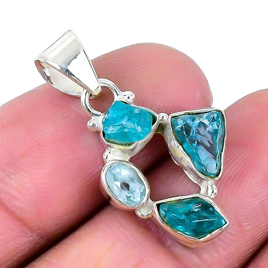 Natural Aquamarine March Trendy Wife Boho Pendant Jewelry Solid Sterling Silver