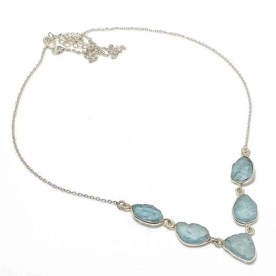 Natural Aquamarine Rough Boho Chain Daughter Gift Necklace Jewelry Solid Silver