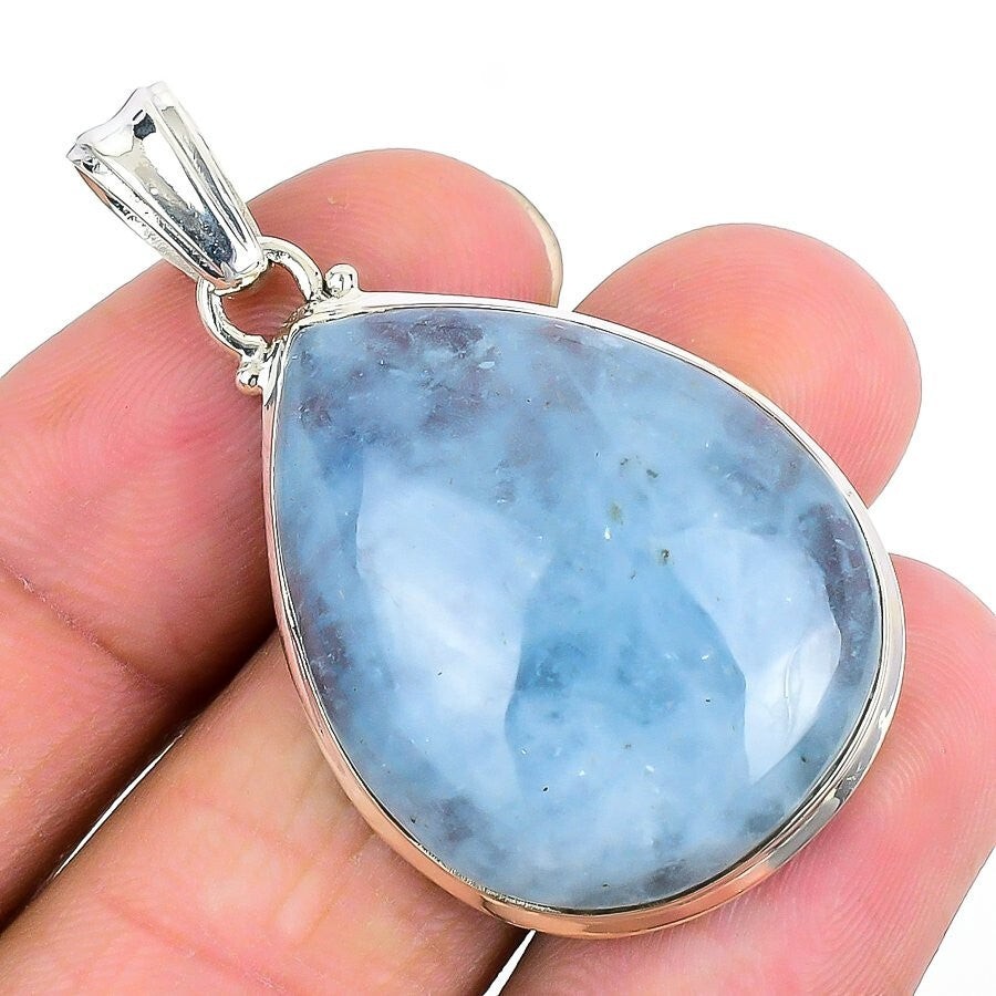 Natural Aquamarine Solid Silver Bezel Sister Engagement Trendy Pendant Jewelry
