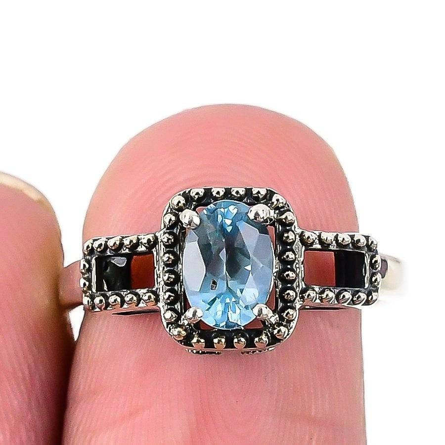 Natural Aquamarine Solid Silver Sister Statement Handcrafted Unique Ring Size 7