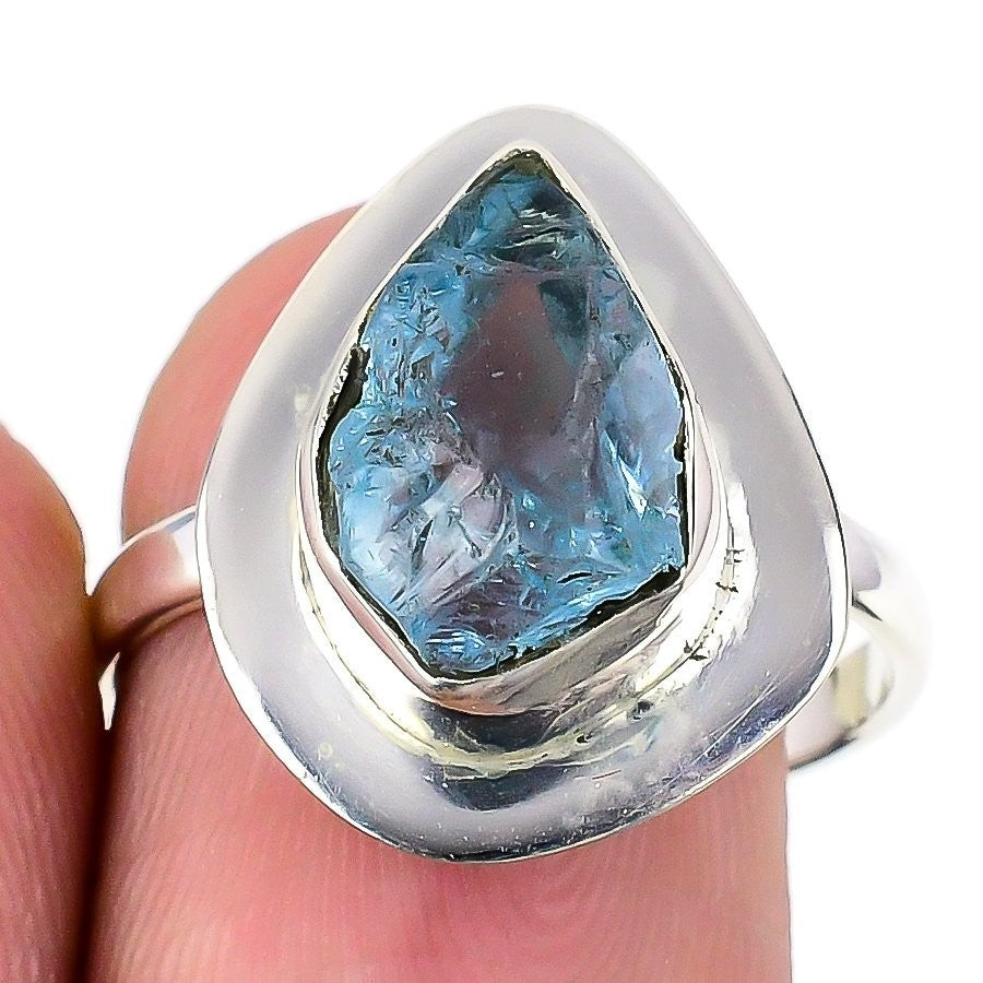 Natural Aquamarine Solid Silver Statement Sister March Birth Ring Jewelry US 8.5
