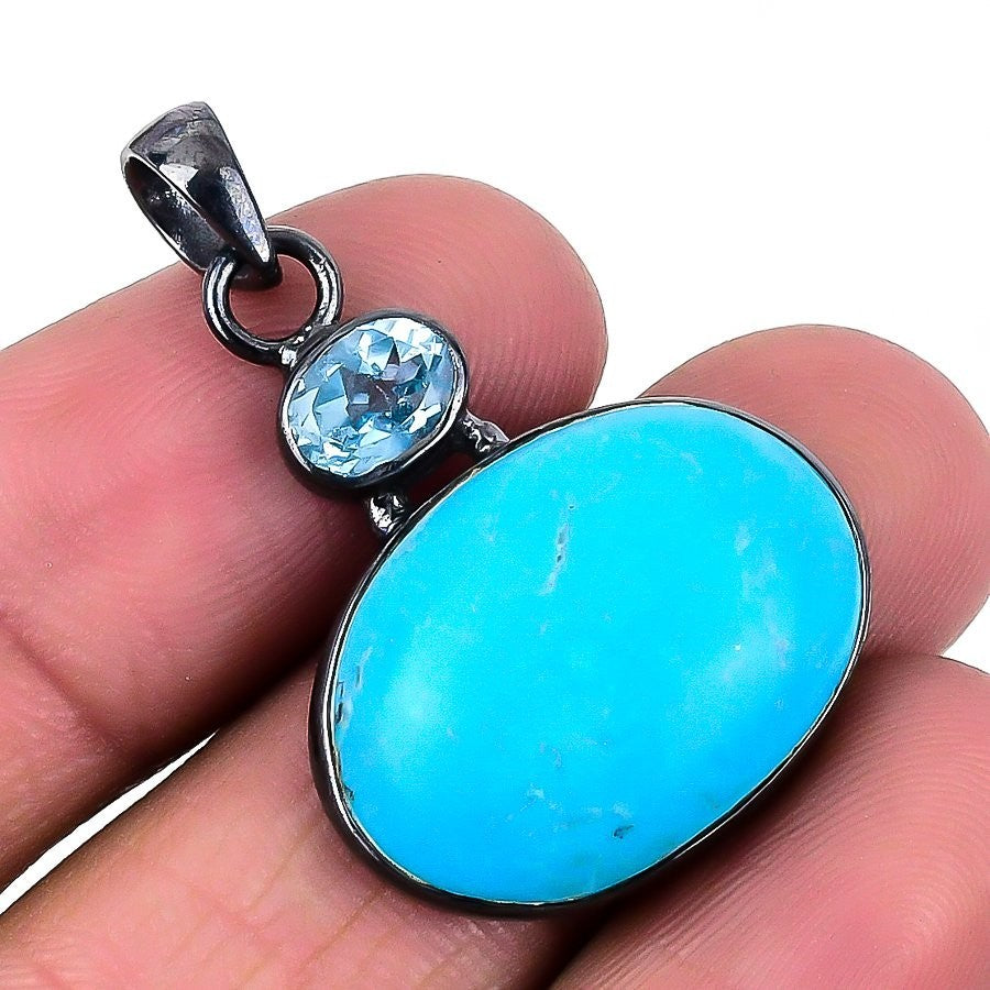 Natural Arizona Turquoise 925 Sterling Silver Art Deco Daughters Day New Pendant