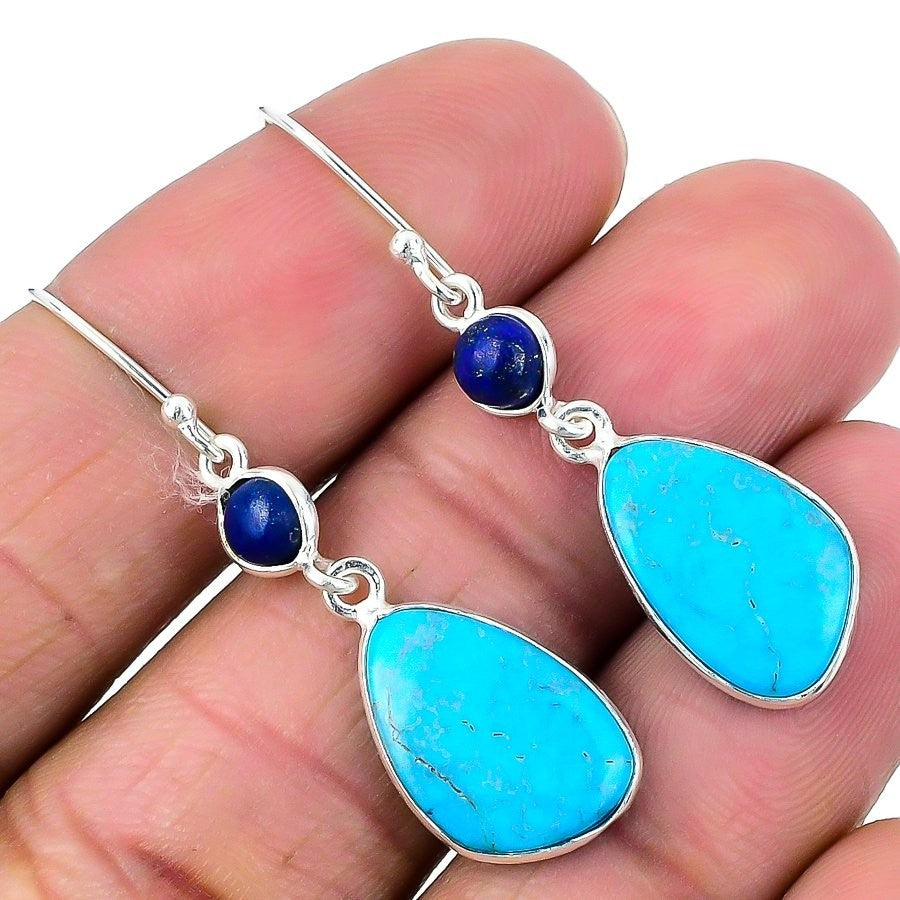 Natural Arizona Turquoise 925 Sterling Silver Dangling Sister Earrings Jewelry