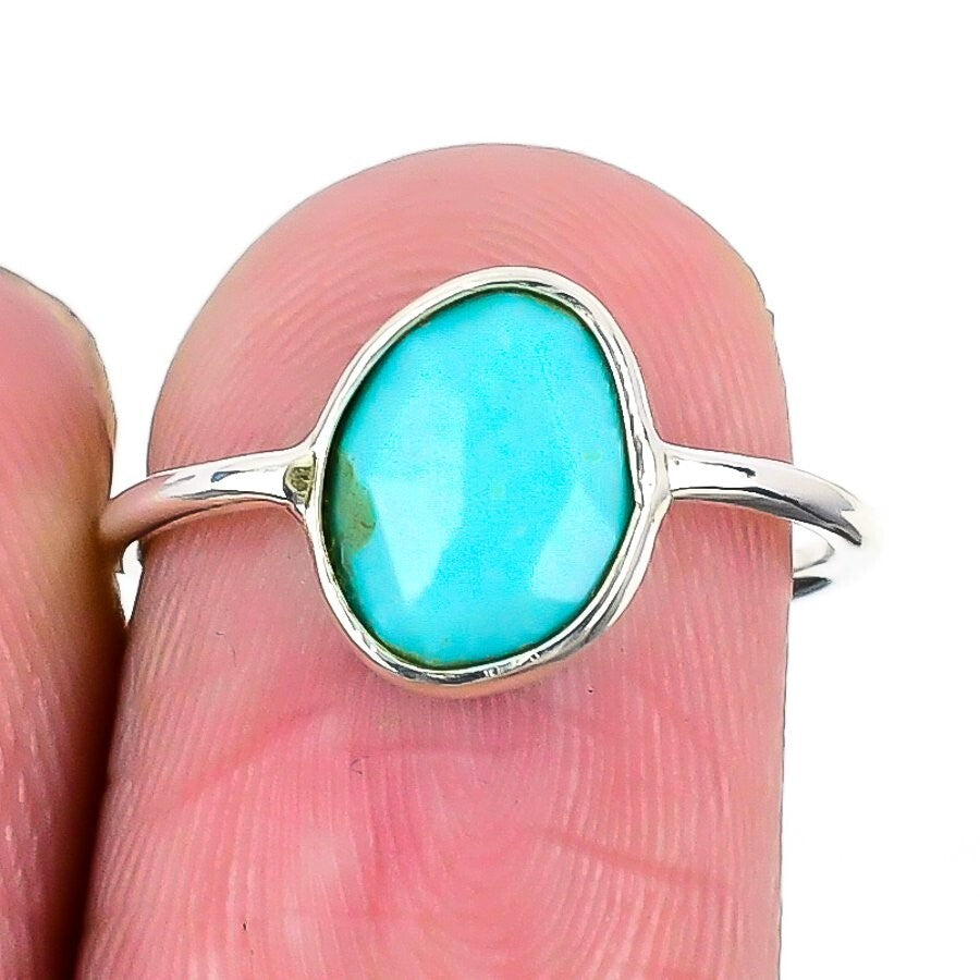 Natural Arizona Turquoise 925 Sterling Silver Handmade Cluster Boho Ring Size 6