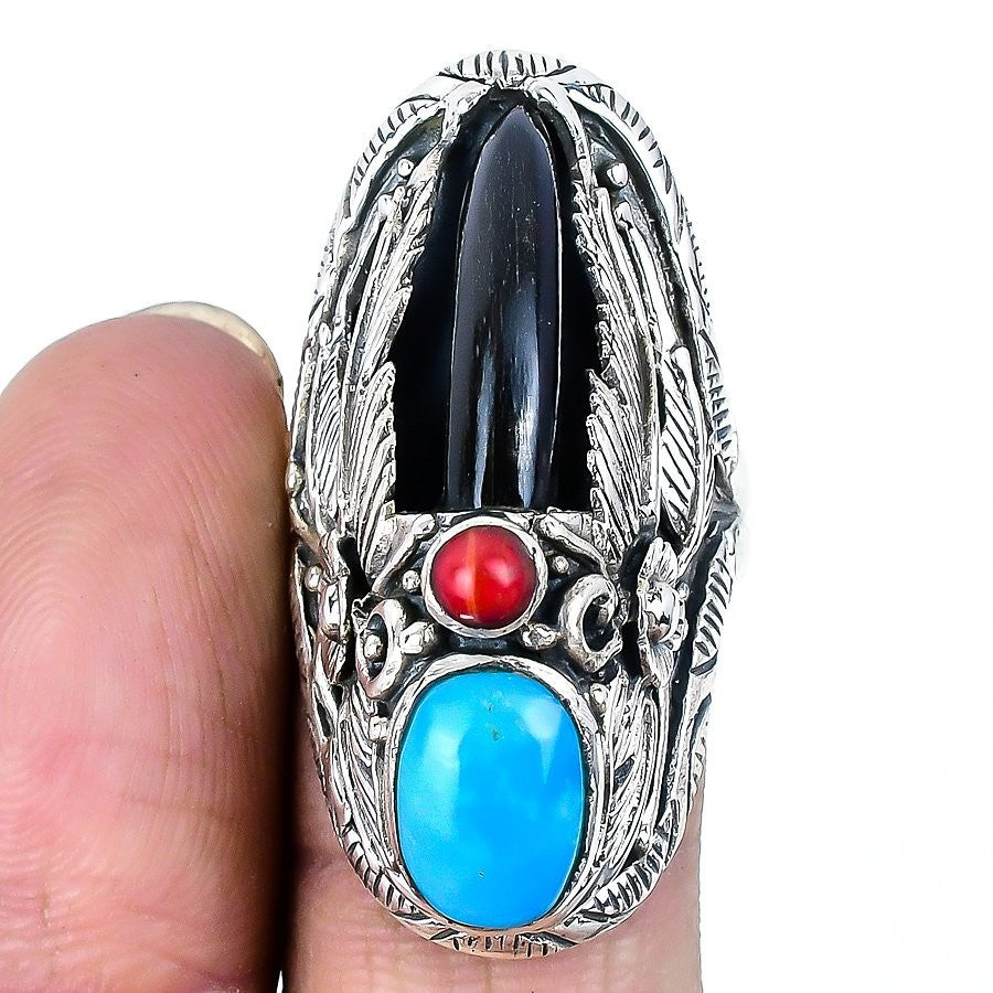 Natural Arizona Turquoise 925 Sterling Silver Statement Daughter Ring Jewelry
