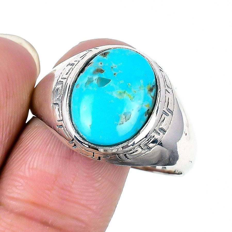Natural Arizona Turquoise Mens 925 Sterling Silver Birthday Statement Ring US 15
