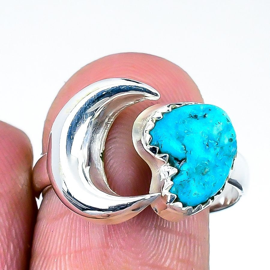 Natural Arizona Turquoise Solid Silver Mother Band Handmade Statement Ring US 9
