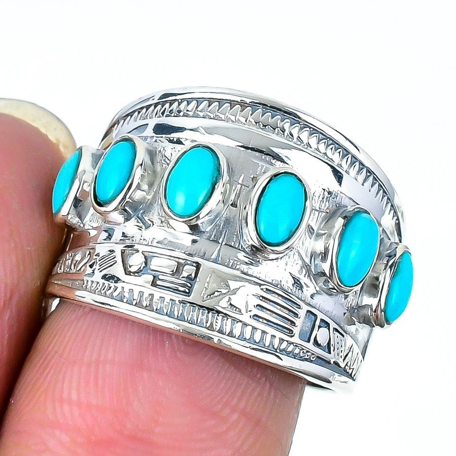 Natural Arizona Turquoise Sterling Silver Daughter Boho Statement Ring Size 8.5