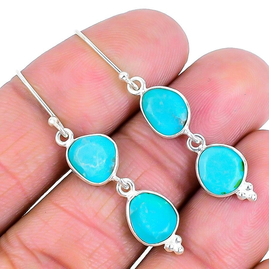 Natural Arizona Turquoise Sterling Silver Stud Push Back Wife Earrings Jewelry
