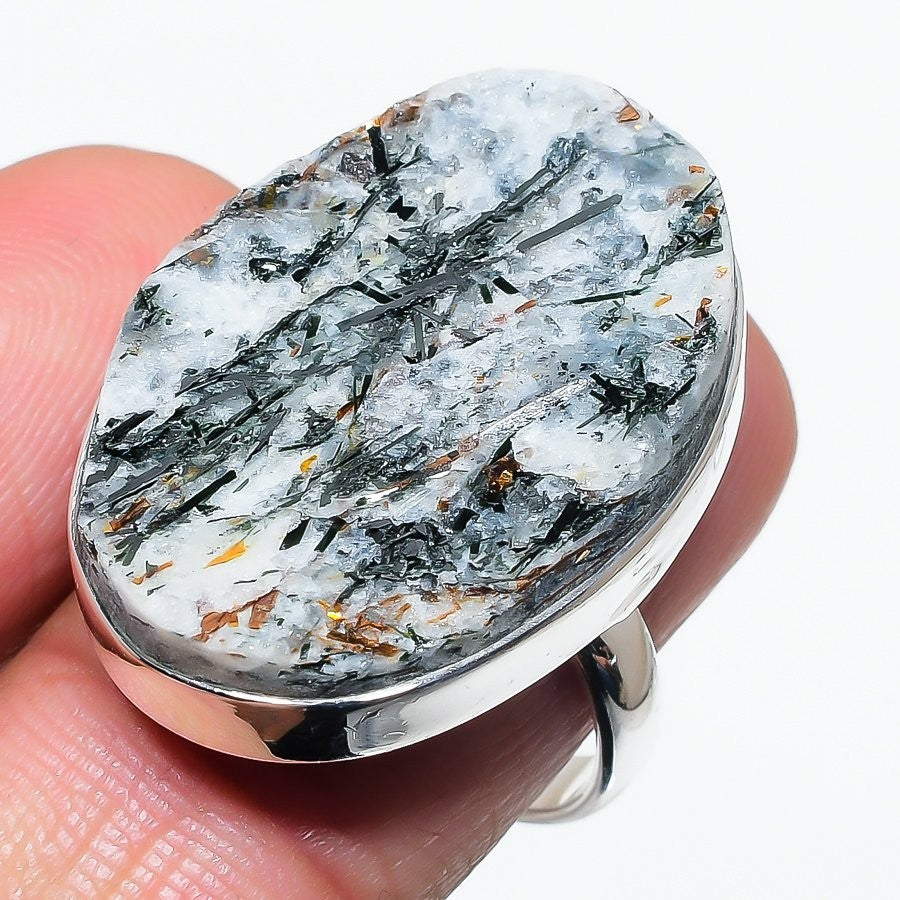 Natural Astrophyllite Daughter Wedding Cluster Ring Size 8.5 925 Solid Silver