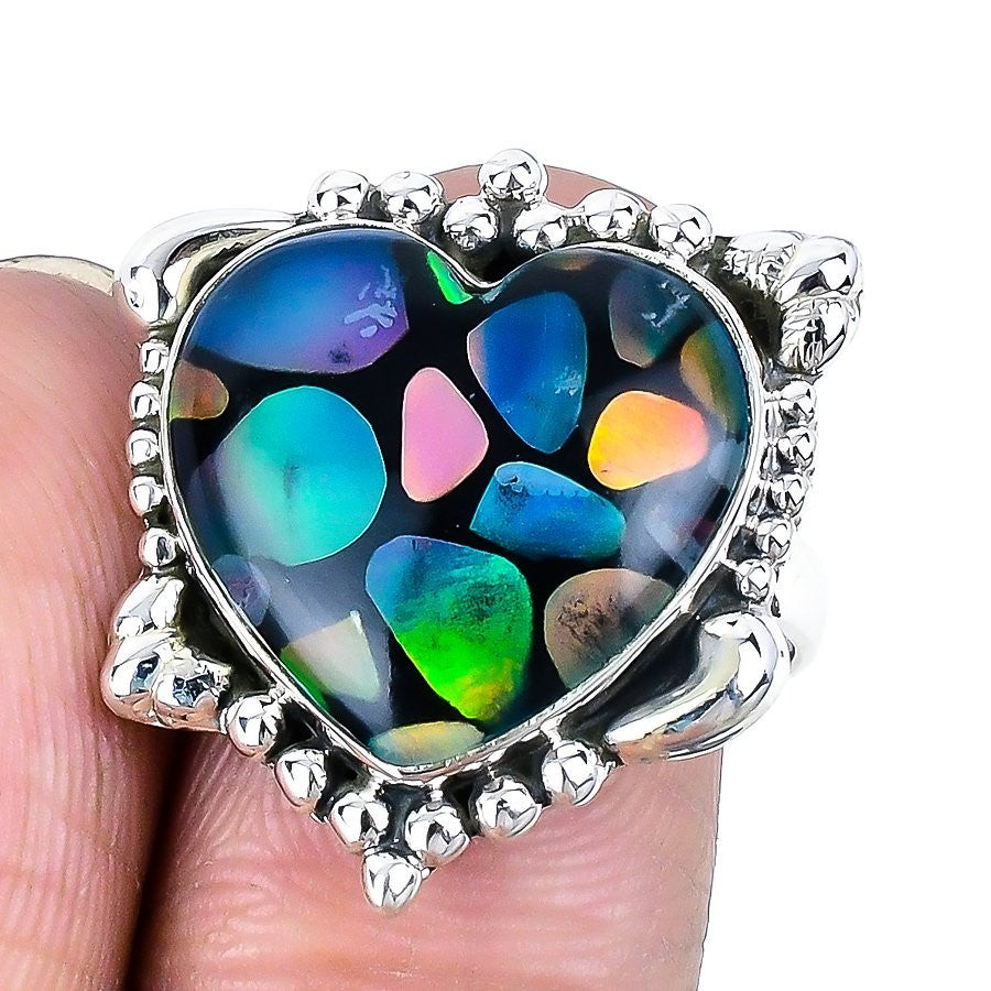 Natural Aura Opal 925 Sterling Silver Daughters Day Statement Engagement Ring