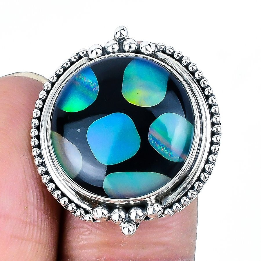 Natural Aura Opal Solid Sterling Silver Mother New Statement Birthday Ring US 8