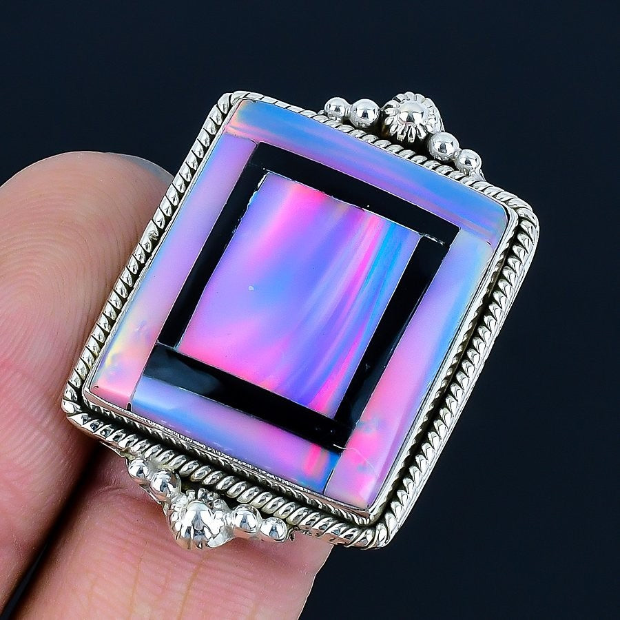 Natural Aurora Opal matrix 925 Solid Silver Statement Daughter Gift Ring US 10