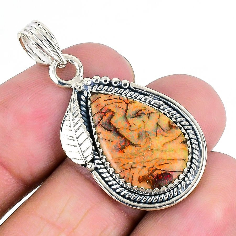 Natural Australian Opal 925 Silver Wife Trendy Birthday Unique Pendant Jewelry
