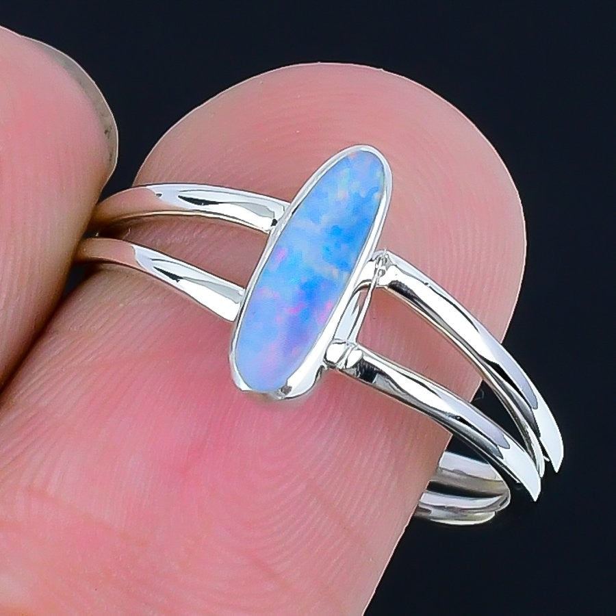 Natural Australian Opal Boho Cluster Daughter Ring Size 9.5 925 Sterling Silver