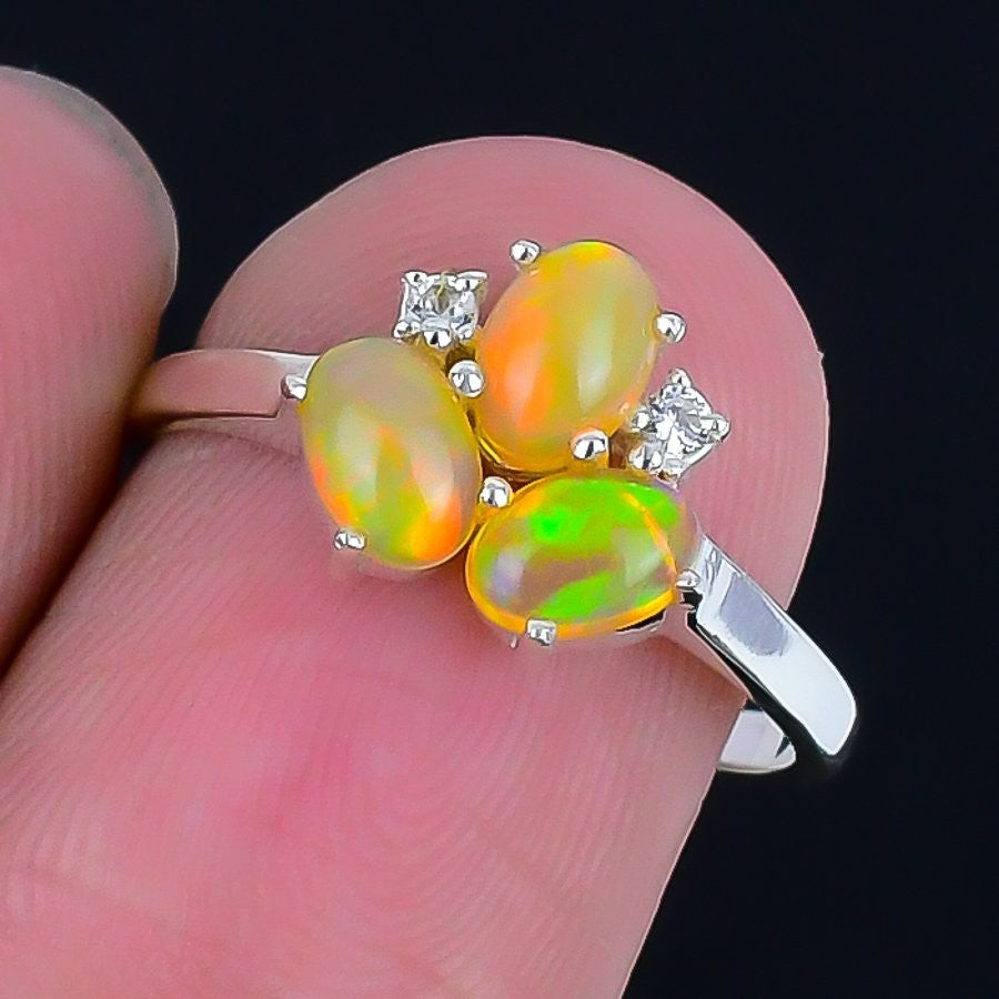 Natural Australian Opal Sterling Silver Elegant Cluster Wife Ring Jewelry Size 8