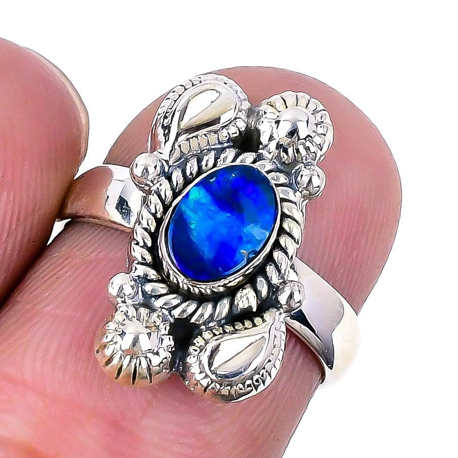 Natural Australian Opal Sterling Silver Statement New Mother Ring Jewelry Size 6