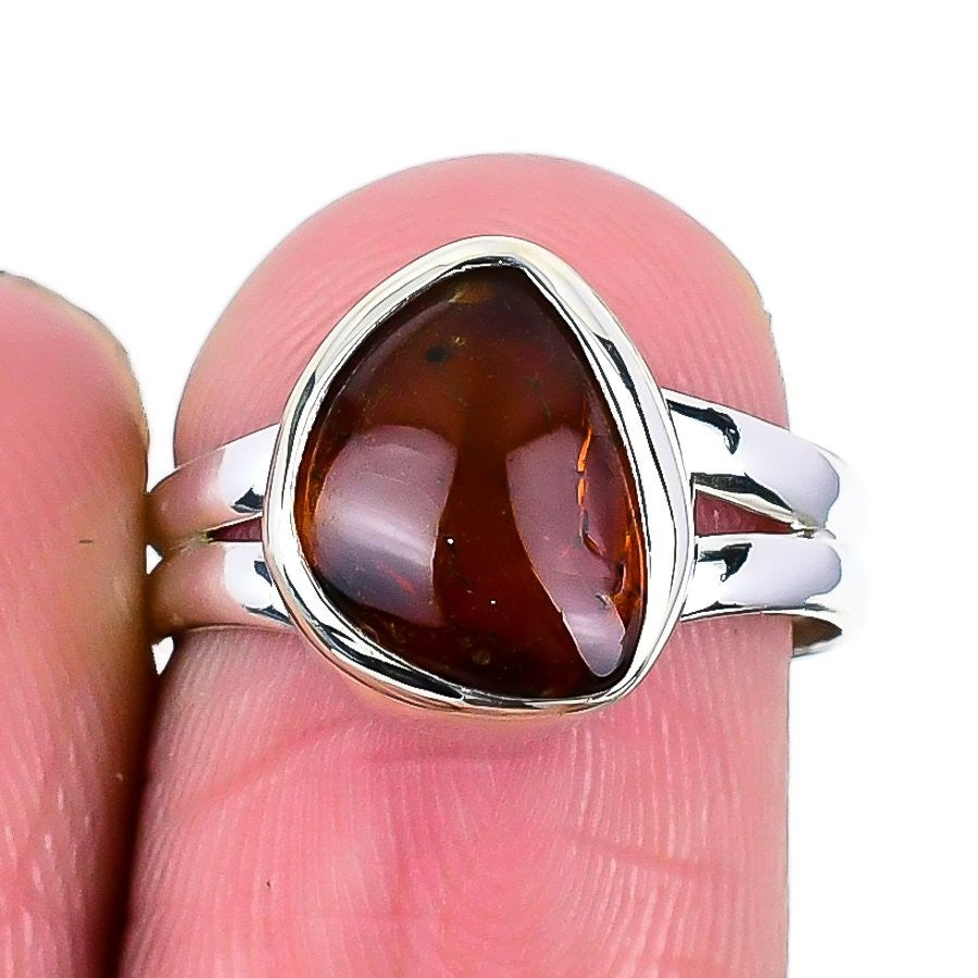 Natural Baltic Amber 925 Silver Mother Cluster Sacral Chakra Wedding Ring Size 7